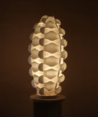 Each lamp is crafted with a maple wood base, textile-grade paper shade, and rubber fittings — no plastics or harmful sealants. Our textile-grade paper is a vegan, leather-like material made from cellulose, water, and natural rubber fibers, giving our lamp shades a soft yet durable finish.